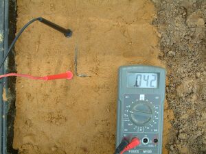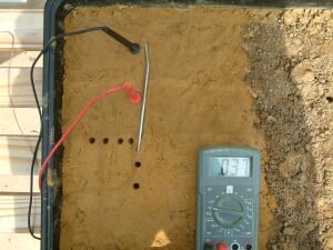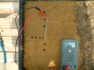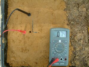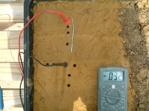 You will see that the half cell is not used in the above pictures and that the results of sticking the nichol plated copper probes into the sand yield useful data.