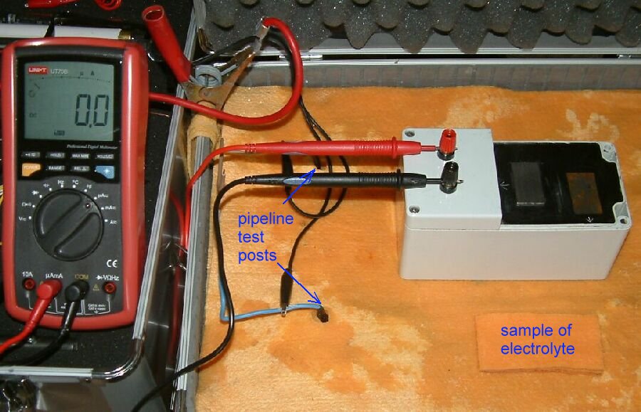5. The cell is connected to the pipeline, while watching the meter, and the changes in the behaviour of the current are noted.