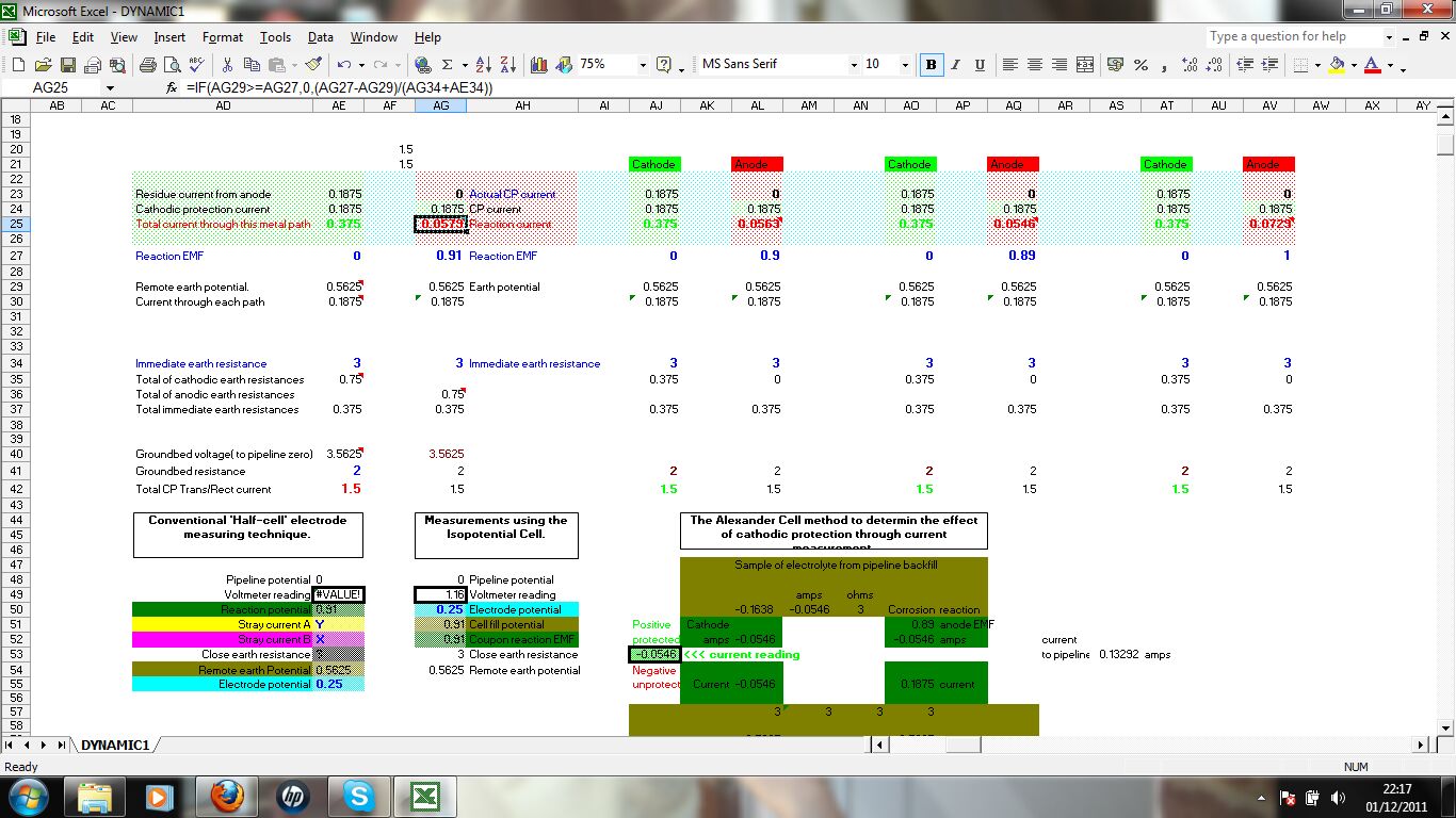 These corrosion cells react to the output of the cathodic protection transformer rectifier(TR). The dynamic equilibrium of each cell is shown in the actual potentials which the computer calculates. The user can put values to the reaction EMF and to the output of the TR. It will be seen that it is possible to stop the corrosion reaction within the Alexander Cell by adjusting the TR in the model.