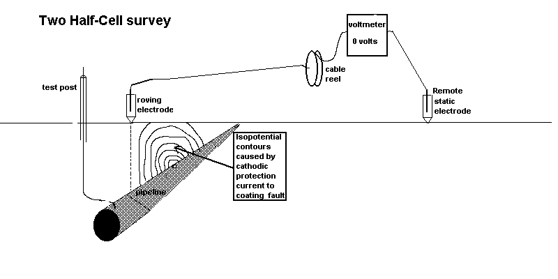 This survey plots the ground potentials between two probes that can be likened to half-cells as they consist of copper and copper-sulphate solution at some part of their measuring circuit.