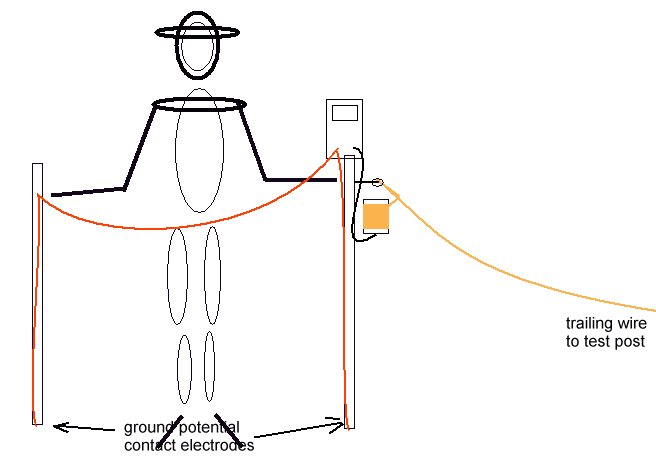The meter is then connected between the trailing wire and the 'harness' that joins the two 'walking sticks',