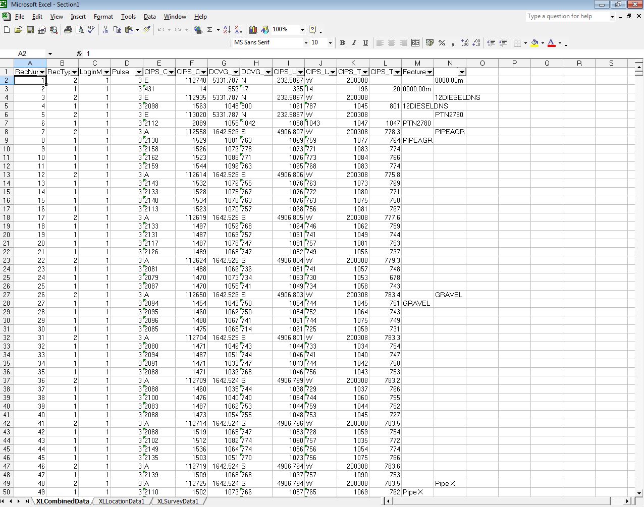 Using spread sheet software we can manipulate the information and data when we have transfered it to a computer. We have to start by selecting the data and information that we need. We the copy this onto a new spread sheet saving the original data in a seperate folder for future reference as the surveys progress. We never destroy original data and must immediately back up folders that contain all information about each pipeline/section/date/time/chainage.