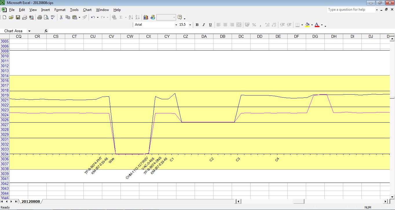 A close interval 'potential' survey should therfore be called a close interval VOLTAGE survey. The data is measured in voltages and these are first viewed on a spread sheet together with information about the exact time and GPS location at which each voltage was measured. There is a column into which the field operator can write notes and 'function keys' are normally provided to tell the instrument where to place other information and how to treat it within the spread sheet.