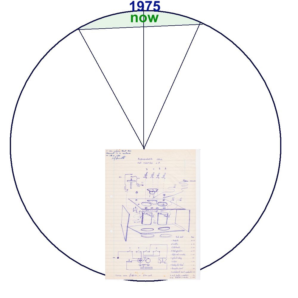 The next picture is a slice of time in 1975 when I first drew my invention of the Alexander Cell. This slice of time is an old document witnessed and signed by a solicitor to establish a priority date for my patent and copyright in this idea.