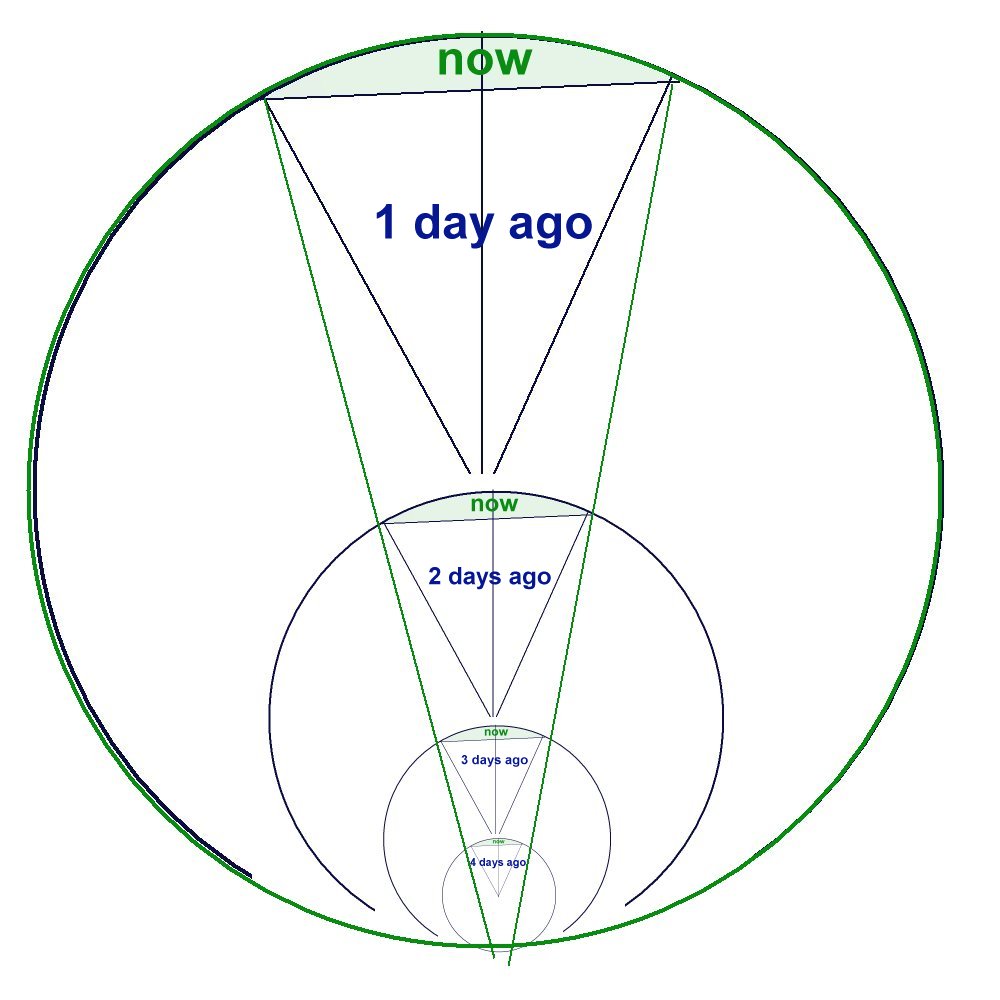 This picture shows the duration of awareness of the observer who is expanding with the universe.