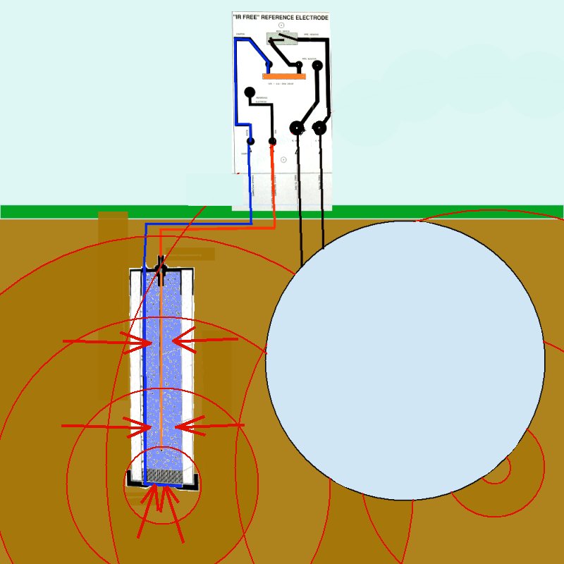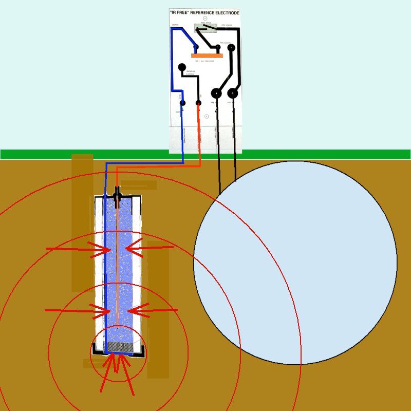The resistances in the earth path depend on the size of the coating fault and the conductivity of any disolved salts. This conductivity is a function of the forming of detectable 'potential zones' or 'shells of resistance' that have been misnamed as 'the IR drop in the soil'.