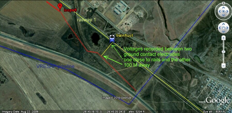 The railway crossing at ICCPS 6 was examined due to the proximity of the groundbed.