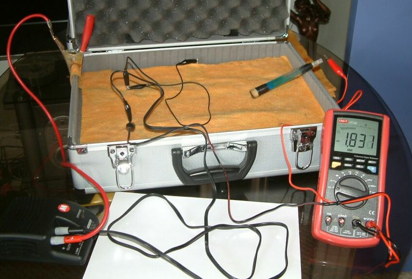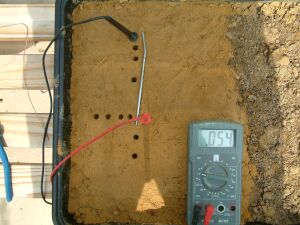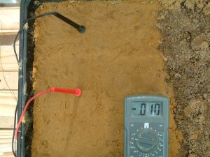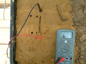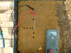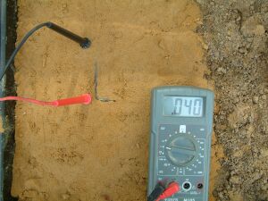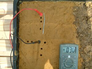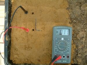 You will see that the half cell is not used in the above pictures and that the results of sticking the nichol plated copper probes into the sand yield useful data.