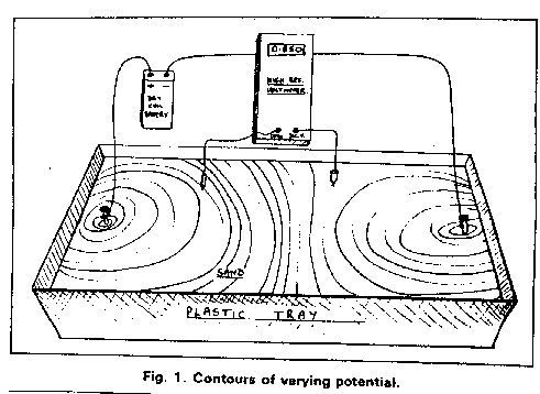 We need a plastic tray of earth or sand which we can keep dry or damp and saturate with different purities of water. We need steel nails, batteries a multi-meter and an assortment of connectors.