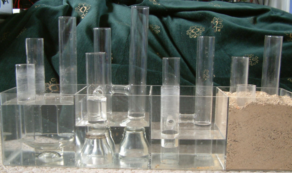 Now look at the sand filled partition and we cannot know anything about the botoms of the tubes or the water levels that are out of our sight. All we can see is the water level that is visible above the sand. This is exactly the situation we are in when measuring the voltage between a half-cell and the pipeline in cathodic protection work.