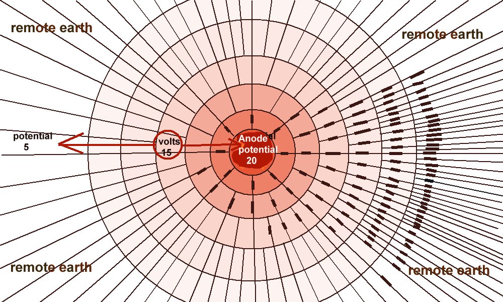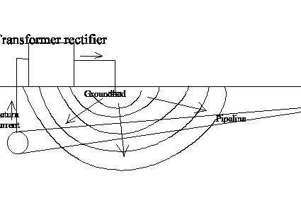However, the charges supplied by the postive terminal of the transformer/rectifier pass into the cable to the anode that is buried in the ground making that at a higher potential that the surrounding earth.