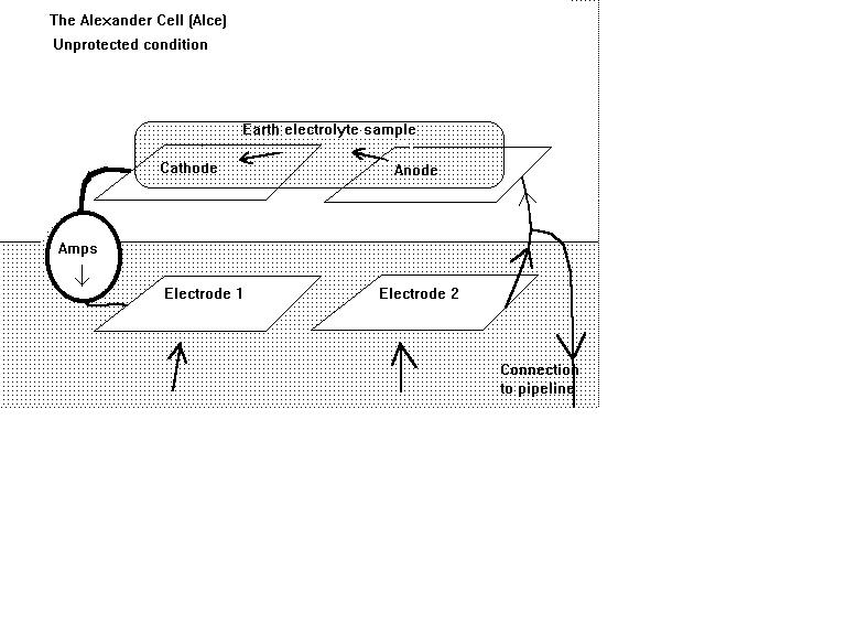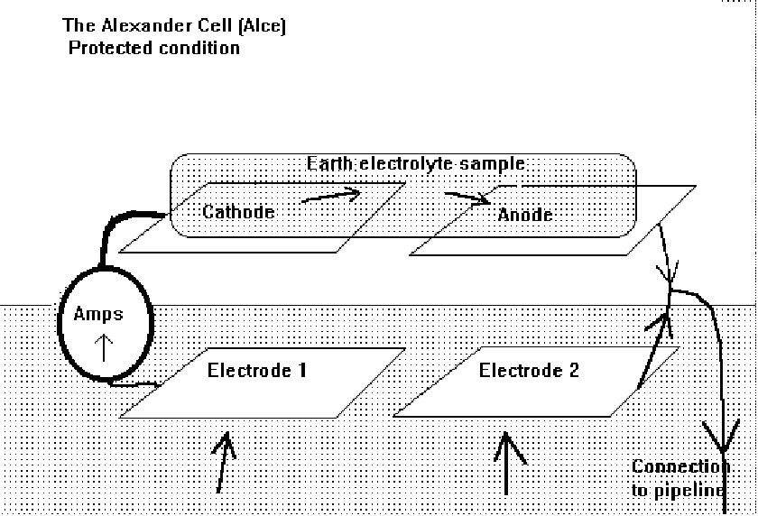 The circuit of the Alexander Cell includes an earth path which allows the whole corrosion cell to be influenced by the current, locally available from the cathodic protection system. The effect of this influence can be seen on a current meter in a closed circuit condition.