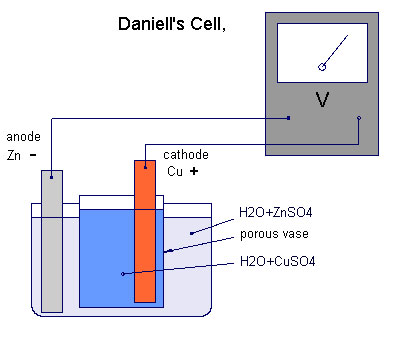 2. The anode (on top) of the cell is cleaned to bright metal and the meter is connected in circuit.