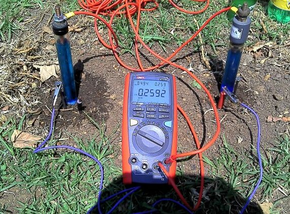 This survey plots the ground potentials between two probes that can be likened to half-cells as they consist of copper and copper-sulphate solution at some part of their measuring circuit.