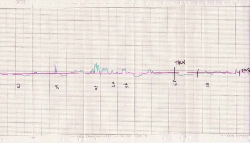 In order to make this measurable I strapped a small audio tape recorder to the receiver so that it was in series with the earphones. I developed a system in which I could 'mark the locations' with an audio peak on the tape and later played the tape back through a recording volt meter.