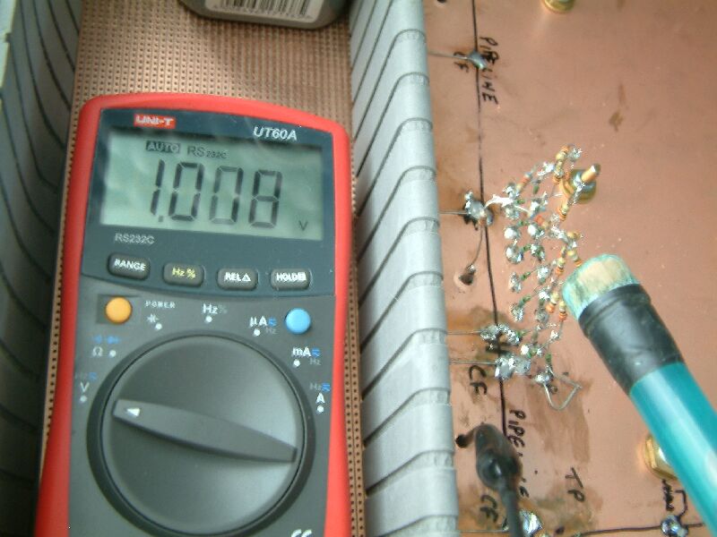 Note that the meter reading reduces from 1 volt to about 0.95 volts. This is due to the increased resistance between the base and the connection point. It reduces the amount of current which is available to be measured by the meter and thereby reduces the reading.