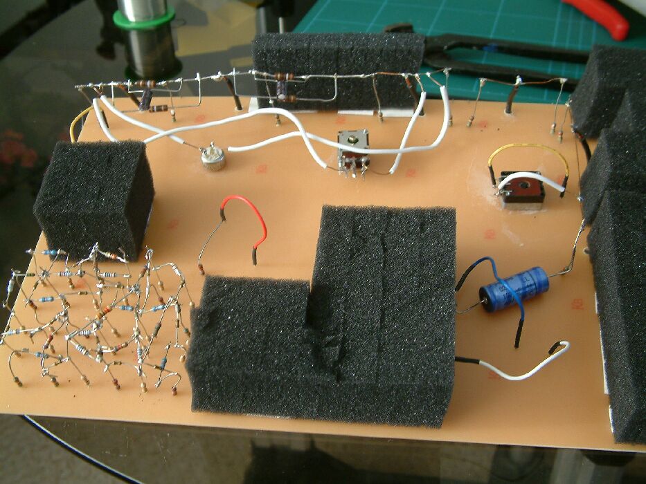 This was a biscuit tin lid, made of tin plated steel sheet to which electronic components can be soldered to give a good electrical connection. This base enables a simulation of the 'mass earth' concept which is an axiom in cathodic protection theory. Both in the field and in Orac there is a virtually resistance free path for current which has entered 'mass earth'. This is now a copper sheet from any electronics supplier.