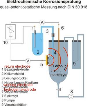 It should be noted, at this stage, that the probes are in the 'IR drop' of single corrosion cells between the anode and cathode of each. This feature is explained in the diagram accompanying DIN 50918