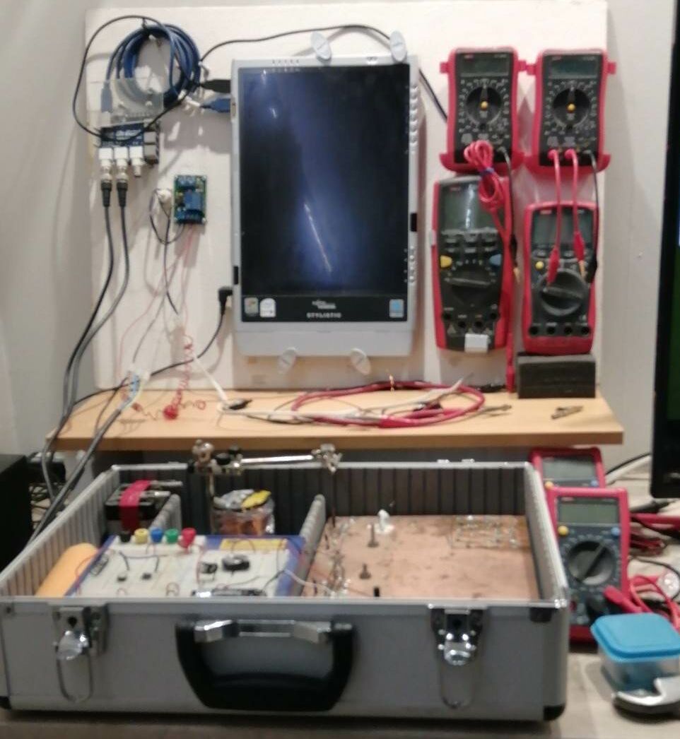 The electronic breadboard is used to emulate inputs and outputs to and from the remote earth copper sheet using electronic components that are used by electronics developers and manufacturers |